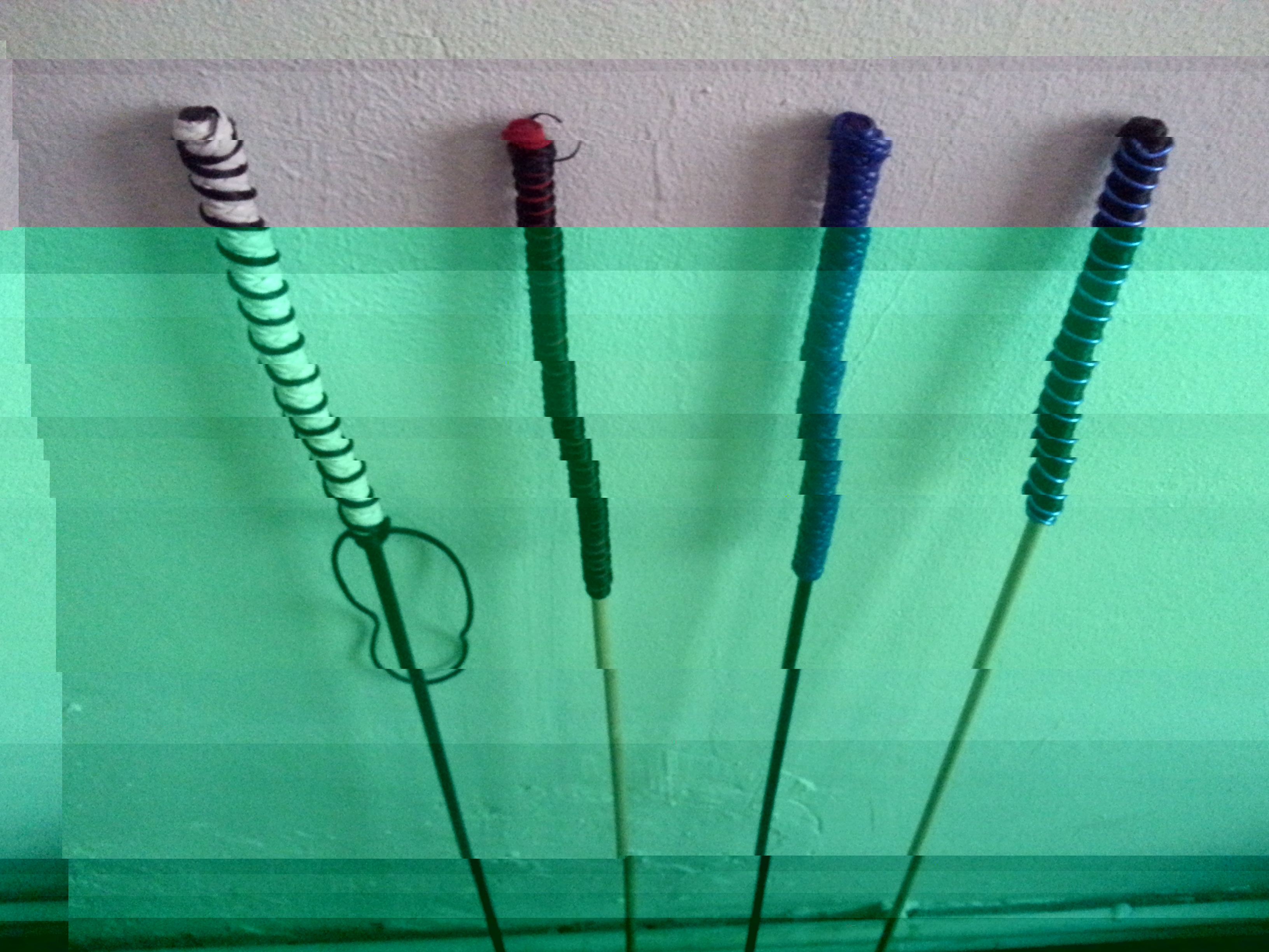 tienen 80 centimetros de largo, con la empuñadura de 15 a 20 cm